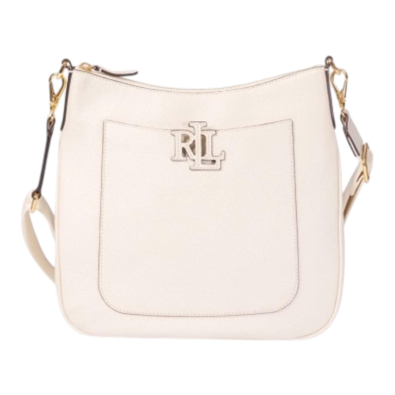 - Chiusura con cerniera sulla parte superiore. Logo "LRL" in pelle a lettere sovrapposte sul davanti. Placca in metallo con incisione "Lauren Ralph Lauren est. 1967" all'interno.