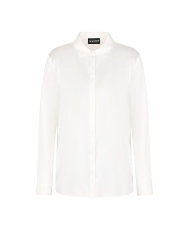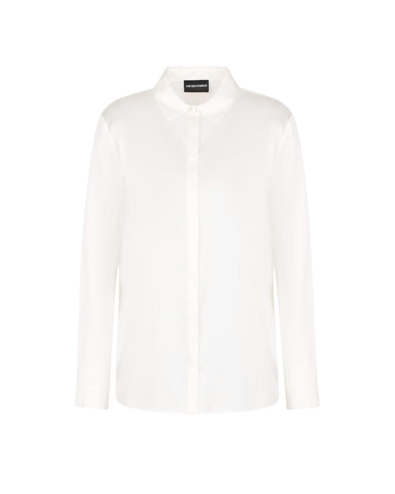 Classic collar shirt made of fine silk satin which, with its natural sheen, charmingly completes even the most basic outfits.