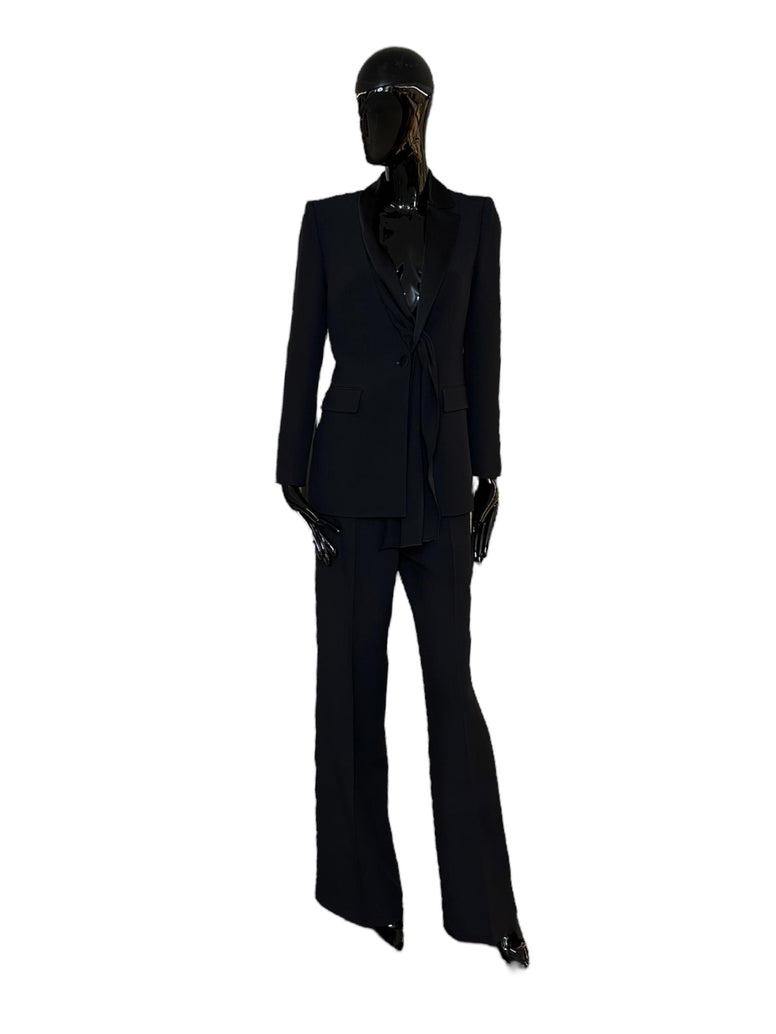 Enver satin jacket with a straight, slightly fitted silhouette. The shiny satin lapel falls in a long drape at the front, for a modern and elegant effect.