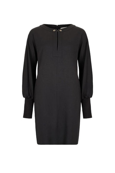 • V-neck dress adorned with gold details
