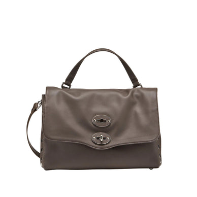 Postina, icona della Maison, caratterizzata dalla doppia chiusura e dalla sua grande versatilità può essere indossata a mano, a spalla o a tracolla.