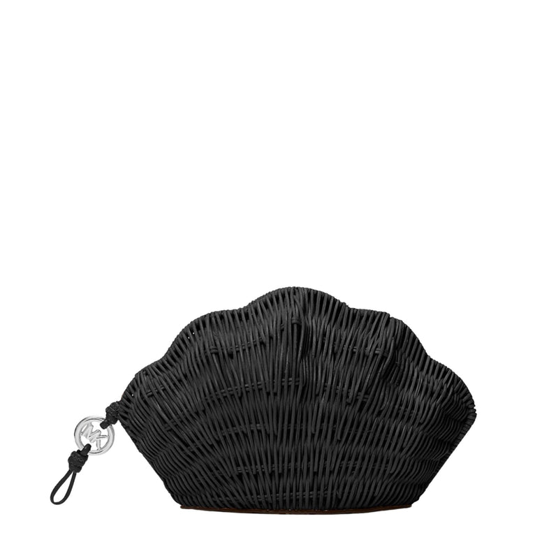 Ti presentiamo Shelly: la perfetta clutch da spiaggia. Realizzata in rattan estivo in una silhouette che richiama una conchiglia, è rifinita con un Pop Charm MK in miniatura per un tocco di lucentezza. Portala con te nella tua prossima vacanza.