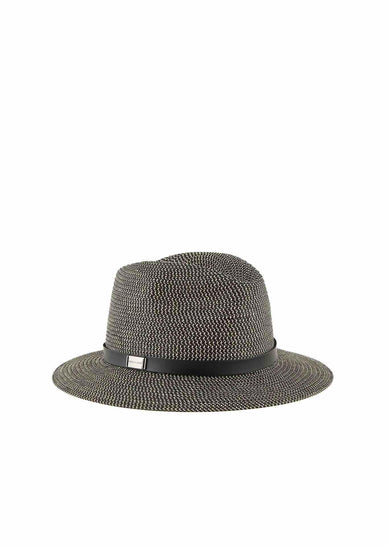 Cappello realizzato in papier a trama intrecciata dall'esclusivo effetto bicolore e con fascetta in tono. Un accessorio che richiama le belle giornate all'aperto e i caldi tepori dell'estate.