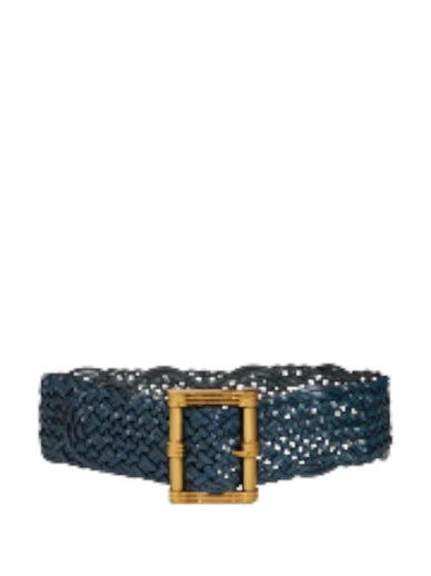 Cintura maxi realizzata in pelle dalla particolare lavorazione intrecciata. L'accessorio presenta una maxi fibbia regolabile ad ardiglione dalla finitura dorata.