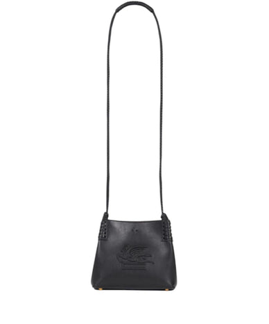 Borsa shopping Libra mini realizzata in pelle a tinta unita, impreziosita da un'applicazione in pelle con logo ETRO Pegaso ricamata sul davanti. Manici intrecciati e lavorazione con infilature sugli angoli della borsa. Interni in suede e chiusura con moschettone.